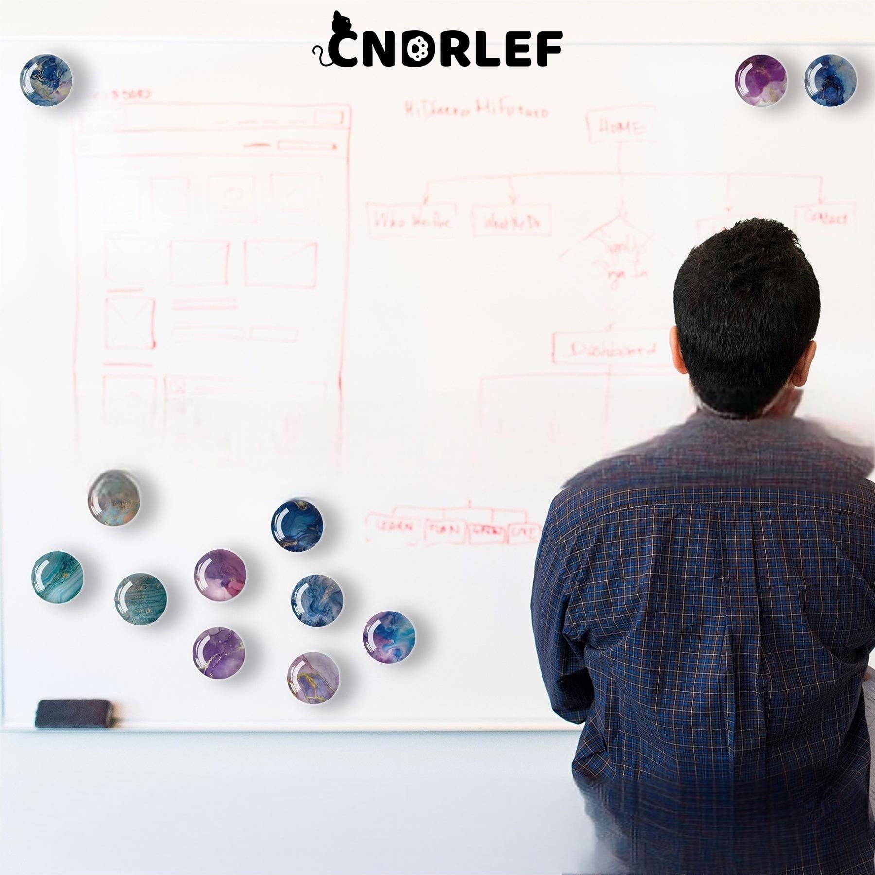 CNDRLEF presents a premium 12-piece glass fridge magnet set featuring luxurious marble patterns in mesmerizing color blends like blue-violet and aqua-green, with select designs accented by elegant gold lines. Each polished tempered glass piece has rounded edges for safety and an ultra-strong magnetic base for versatile use on refrigerators, metal cabinets, or whiteboards. Elevate your kitchen, workspace, or gift-giving with these sophisticated, art-inspired accents!