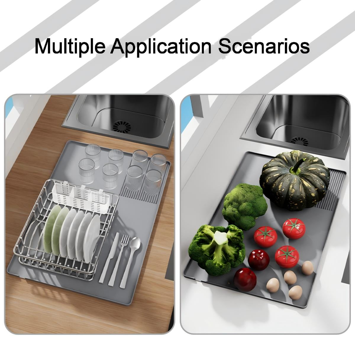 - Multi-Scenario ApplicationIdeal for espresso machines, dish drying, fruit/vegetable storage, pet feeding, and more. Enhances kitchen aesthetics with its modern gray design and practical functionality.