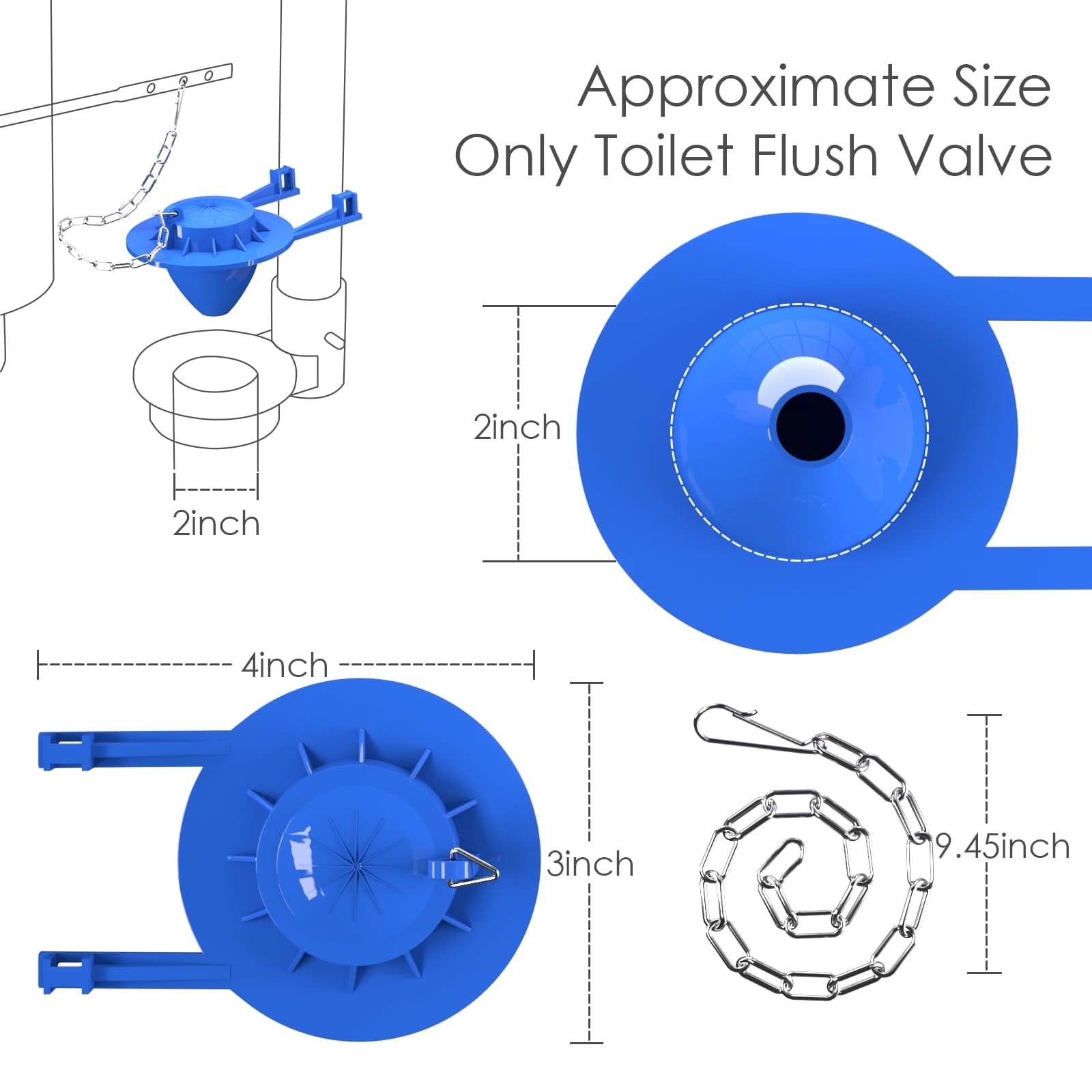 Upgrade Your Toilet with CNDRLEF's Durable 2-Inch Toilet Flapper Kit! Tired of a running toilet that wastes water and increases your bills? The problem is often a worn-out flapper. Our CNDRLEF 2-Pack Toilet Flapper Replacement Kit provides a permanent, efficient solution with advanced features for superior performance. Why Choose Our Toilet Flapper? Superior Material Science: We use a high-grade Soft PVCformulation that remains flexible over time, resisting the hardening and cracking common with standard rubber flappers. This results in a consistently reliable seal and an extended product lifespan. Precision Fit for 2-Inch Valves: Specifically designed for toilets with a 2-inch flush valve drain opening. We emphasize this critical size to ensure you get the correct part, eliminating leaks caused by improper sizing. Complete Replacement Kit: Each order includes two full sets. Every set contains one blue Soft PVC flapper and one sturdy, rust-resistant stainless steel chain with an adjustable hook, providing you with a spare for future needs. Extensive Brand Compatibility: Rest assured that this universal flapper works seamlessly with a wide range of popular toilet brands found in homes across the country. Easy DIY Installation for Everyone You don't need any plumbing experience! Our kit is designed for a hassle-free, tool-free installation. In just a few minutes, you can have your toilet working quietly and efficiently again, preventing water loss and saving money. Ideal for Multiple Applications This versatile kit is a smart choice for homeowners, tenants managing their own repairs, landlords maintaining their properties, and professional plumbers who demand reliability for their clients. Order your CNDRLEF 2-Inch Toilet Flapper Kit today and enjoy a quiet, water-efficient toilet!