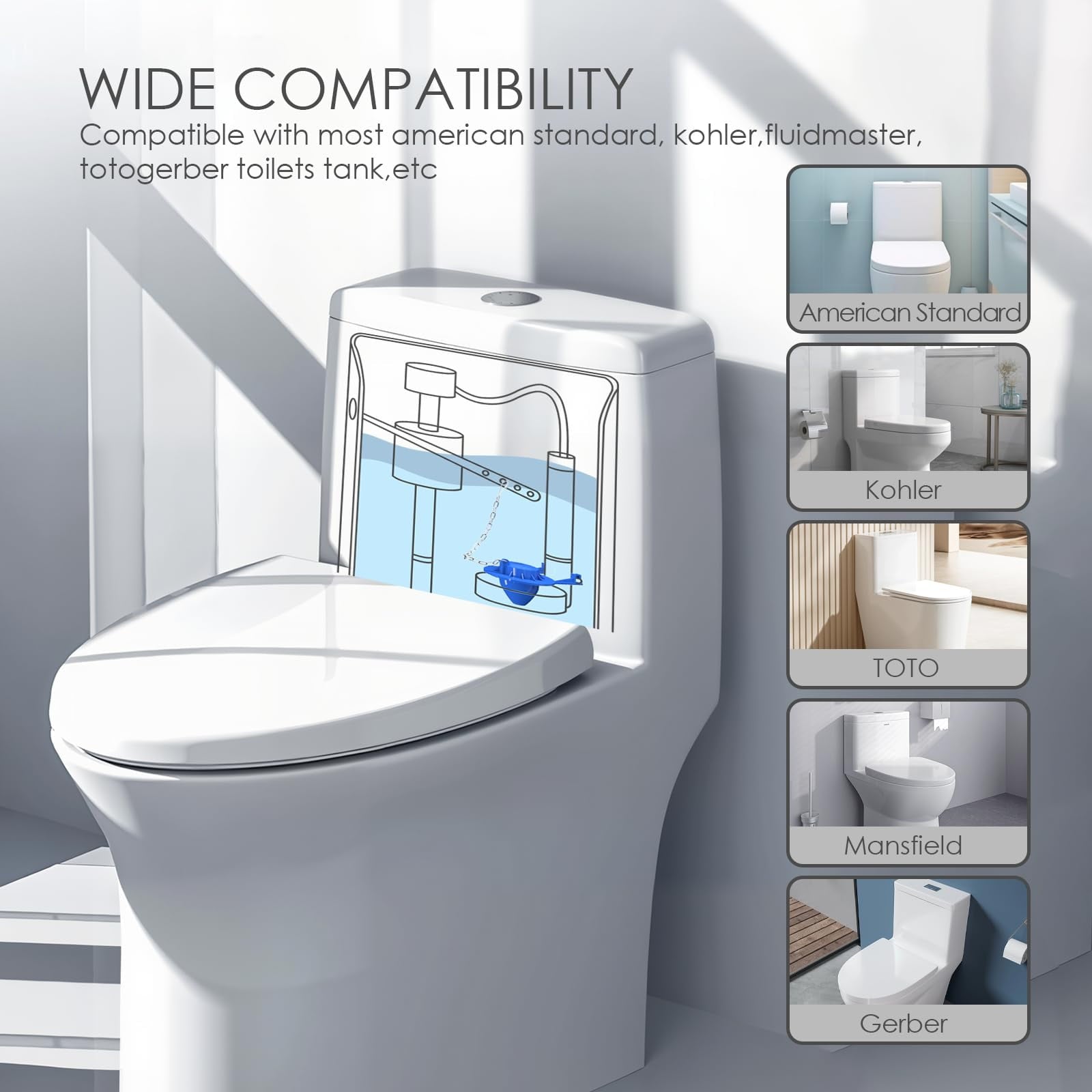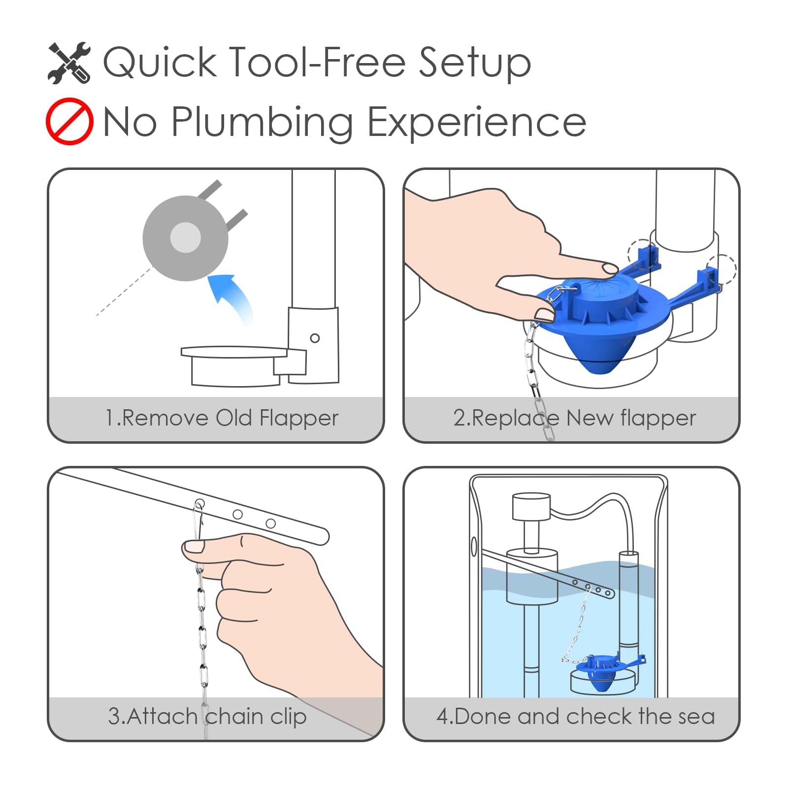 - 【Tool-Free Installation in 5 Minutes】No need for a plumber! Our replacement kit allows for a quick, do-it-yourself installation without any tools. Simply follow the easy steps: remove the old flapper, attach the new one, and connect the chain. It’s an effortless process that homeowners, tenants, landlords, and pros can complete in minutes.