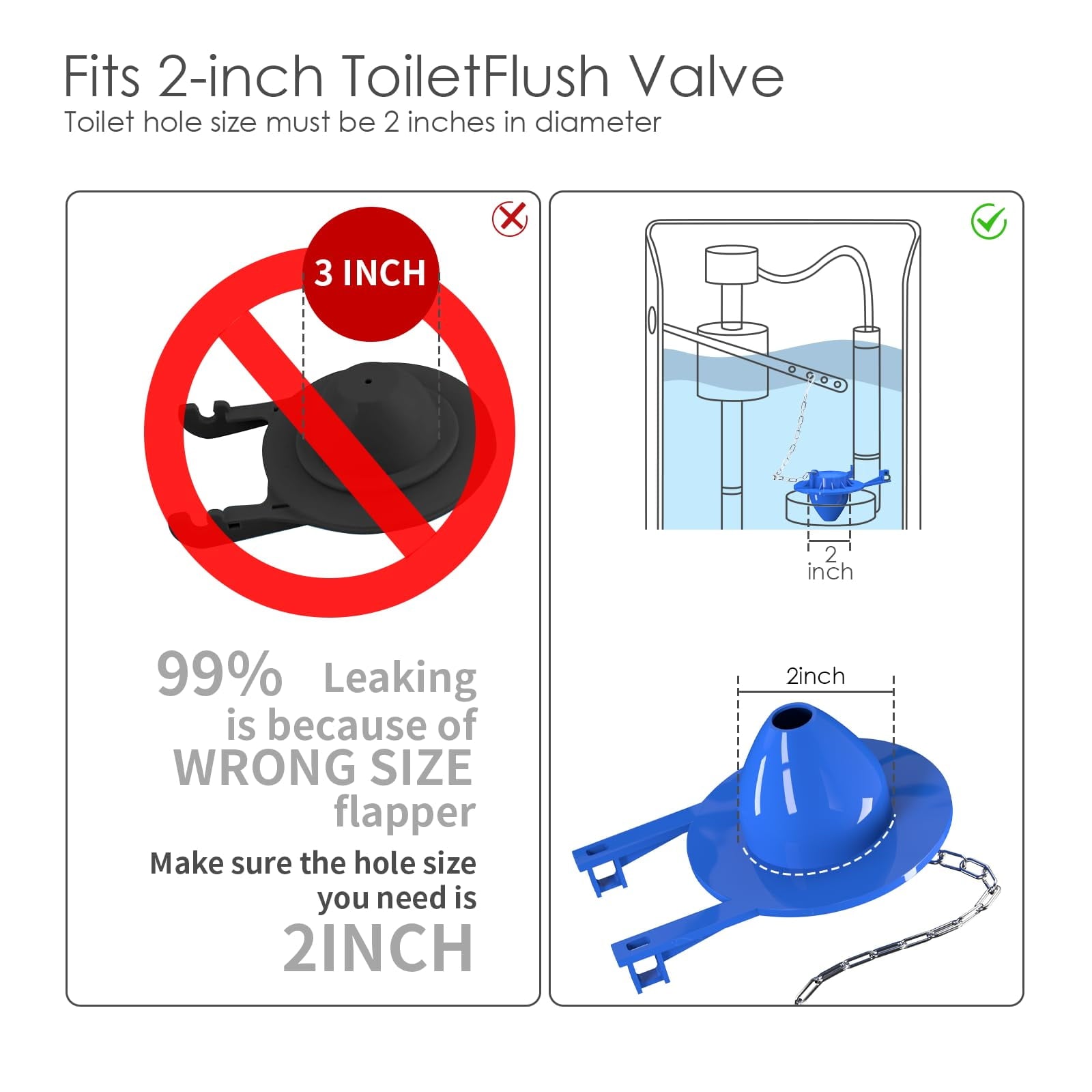 - 【Stop Leaks & Ghost Flushing - Fits 2" Valve】Eliminate constant running water and mysterious "ghost flushing"! Our flapper is precision-engineered to fit 2-inch flush valve openings perfectly. The package highlights the critical 2-inch size to prevent installation errors, ensuring a tight seal that stops water waste and protects your bathroom from water damage.