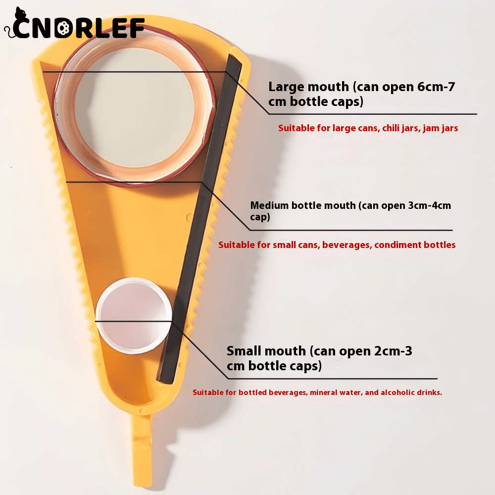 - **1 VERSATILE BOTTLE OPENER:** Open it ALL! Multifunction opener handles large jar lids (6-7cm), medium cans/soda tops (3-4cm), & small bottle caps (2-3cm) - pet food, drinks, jars, beer & more.