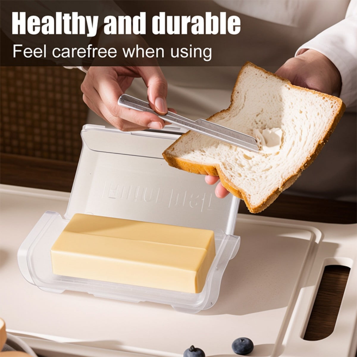 - Scraper-Side Design for Easy UseFeatures integrated side stoppers that allow smooth scraping and scooping, making it easy to manage butter without mess.