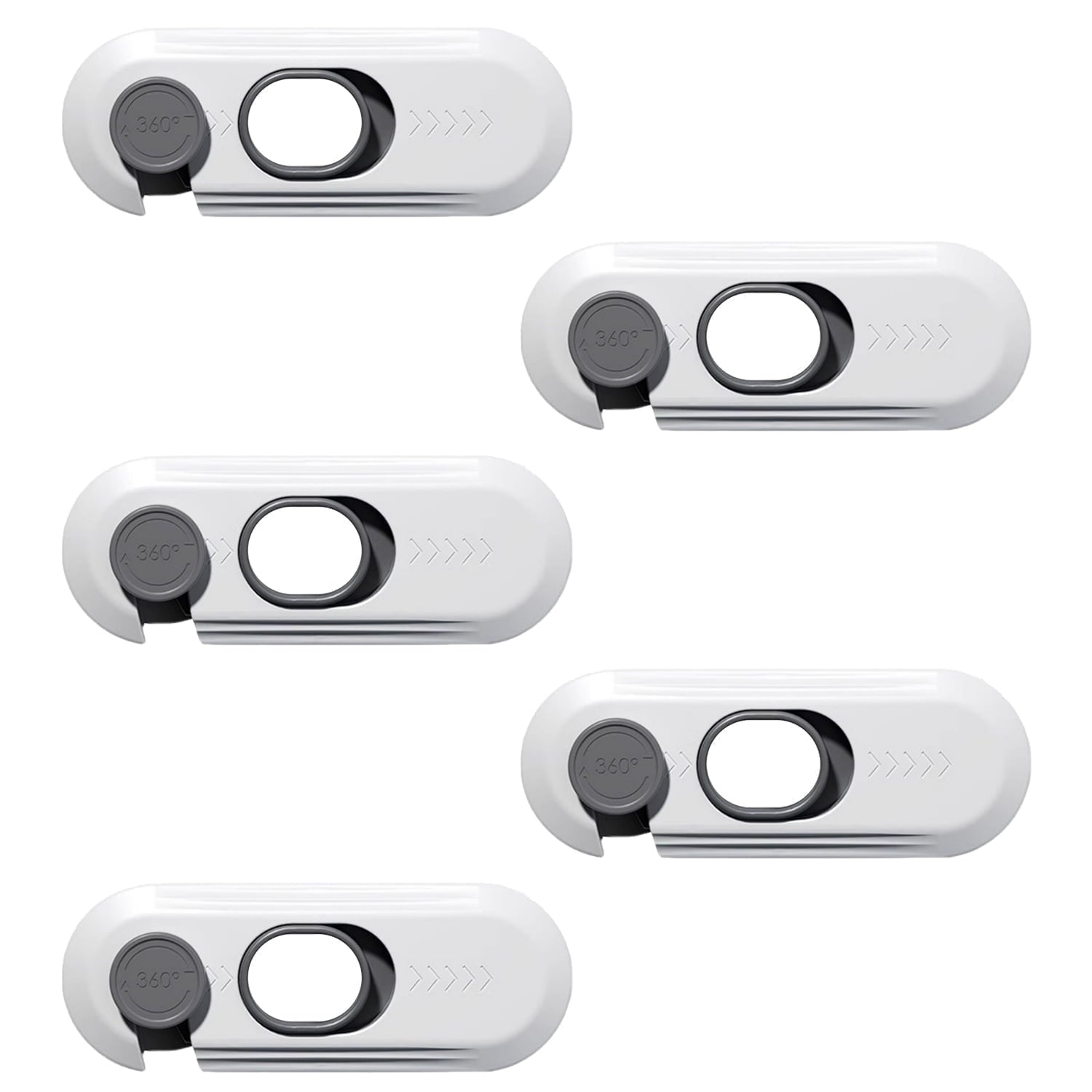 CNDRLEF Childproof Cabinet Locks 5 Pack - No Drill Adhesive Safety Latches for Cabinets, Drawers, Fridge, Pantry & Closet, Baby Proofing White